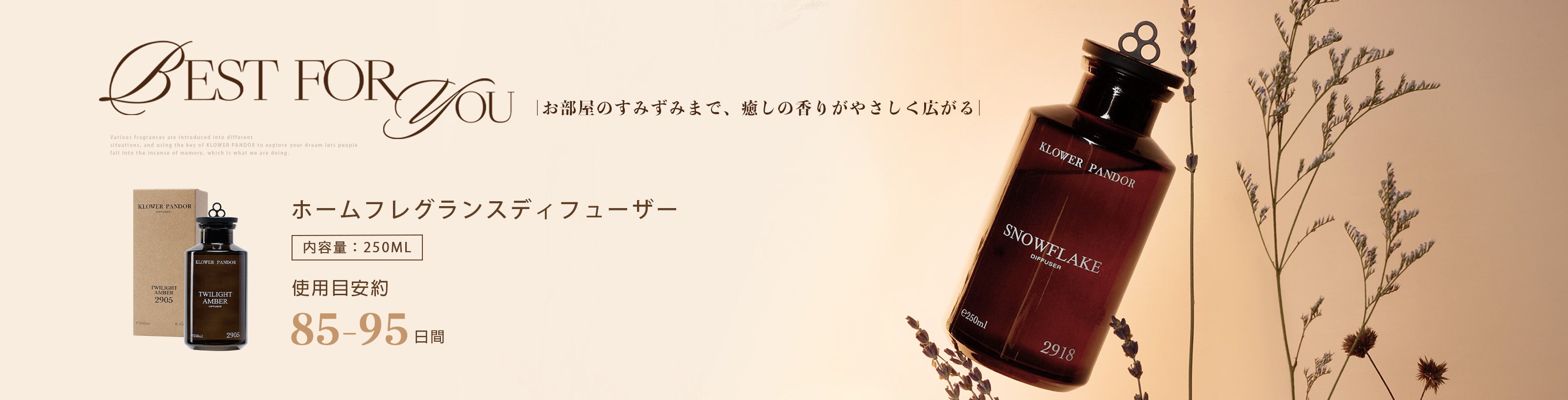 高級花材を低温で抽出し、香りの層が繊細に重なり長時間香りが持続